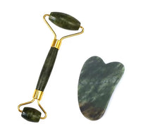 2PCS Natural Jade Stone Gua Sha Face Roller & Scraper Set – Beauty Skincare Tool for Facial Massage, Neck Slimming & Body Relaxation